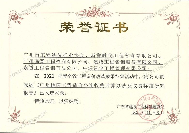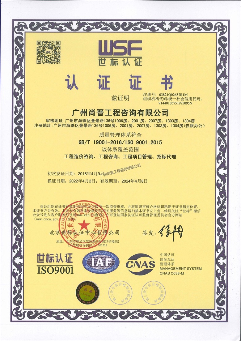 廣州尚晉工程咨詢有限公司(以下簡稱“尚晉咨詢“) 。具有建設部頒發(fā)的甲級工程造價咨詢資質、國家發(fā)展改革要頒發(fā)的工程項目管理資格證及廣東省工程建設招標代理資信A,是廣東省首批搭建大數據咨詢平臺進行全過程咨詢管控模式的公司之一,擔任廣東省工程造價協會理事單位、廣州市造價協會理事單位、廣東省建筑業協會理事單位等要職。 廣州尚晉工程...
